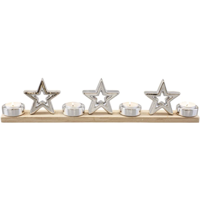 Advents-Teelichthalter – Sterne – aus Holz – 47 x 5,5 x 10 cm
