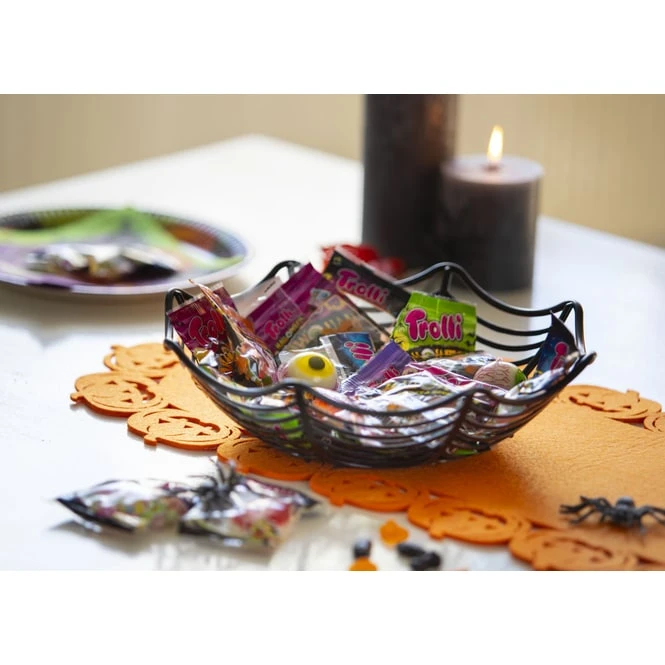 Sie sind auf der Suche nach toller Dekoration für Halloween? Dann haben wir hier etwas ganz Tolles! Zu diesem Anlass passt bekanntlich nichts besser als fürchterliche Krabbeltiere wie Käfer oder Spinnen. Mit diesem Dekokorb in Form eines Spinnennetzes werden Sie nicht nur den Zartbesaitetsten einen gehörigen Schrecken einjagen. Dieser ist insbesondere dank seines Designs sowie den fürchterlichen Bewohnern ein echter Hingucker, welcher auf keiner Halloweentafel fehlen darf. Drapiert auf dem Tisch oder einem Regal eignet sich der Korb optimal dazu, um allerlei schauderliche Gummiwürmer oder -augäpfel dekorativ zu präsentieren und die Gäste gehörig grauen zu lassen.