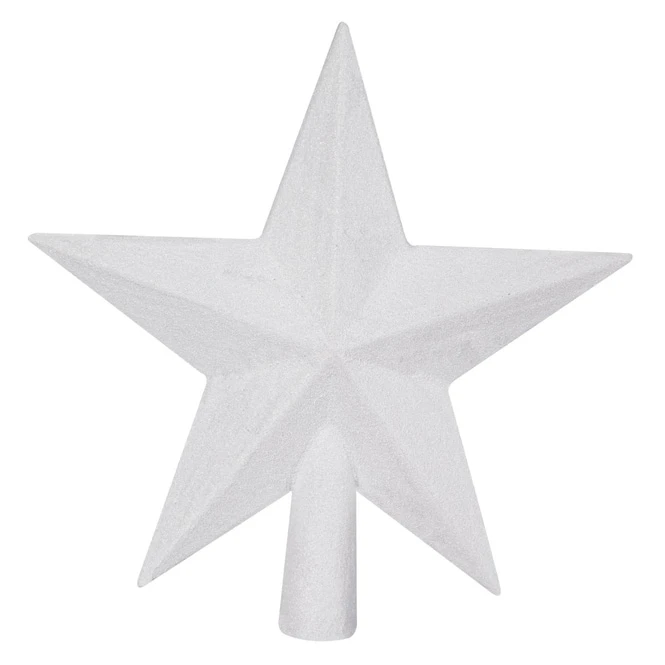 - die Christbaumspitze in Form eines Sterns, ist weiß und glitzert