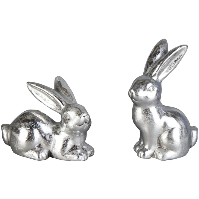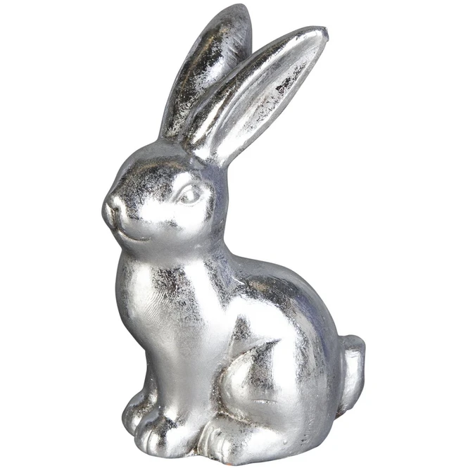 Nun dauert es nicht mehr lange, bis unsere flauschigen Haustiere mit den größen Löffeln wieder Hochkonjunktur haben und aus der Dekoration keineswegs wegzudenken sind. Aus diesem Grund liegt ihr mit dem niedlichen Dekohasen goldrichtig! Dieser ist aufgrund stylischen Farbgebung ein echter Augenschmaus und somit das ideale Stück, um österliche Akzente in der Inneneinrichtung zu setzen. Er besteht aus Terrakotta und kommt in zwei liebevollen Gestaltungen in zwei unterschiedlichen Größen zu euch nach Hause (eine Vorauswahl ist leider nicht möglich). Mithilfe des zeitlosen Silbers fügt sich der tolle Hase nahtlos in jeden Raum ein und sorgt so im Nu für ein wohliges Ambiente. Also schnappt ihn euch und erlebt grenzenlosen Dekospaß!