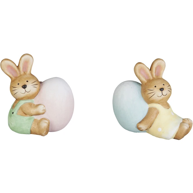 Trendsetter, aufgepasst! Wenn ihr euer Zuhause nach dem ungemütlichen Winter mithilfe geschmackvoller Dekoration hübsch herrichten wollt, um den Osterhasen stilecht willkommen zu heißen, liegt ihr hiermit goldrichtig! Der niedliche Dekohase ist ganz sicher der fröhlichste Bote der blühenden Zeit und somit ein Muss für jedes Zuhause. Er besteht aus Terrakotta, ist 8 x 5 x 8 cm groß und in einer von zwei liebenswerten Gestaltungen erhältlich (eine Vorauswahl ist leider nicht möglich). Diese fügt sich nicht nur nahtlos in jeden Raum ein, sondern verbreitet zudem auch ein wohliges Osterambiente, von welchem ihr und eure Lieben ganz sicher nicht genug bekommt. Also schnappt euch das tolle Osterhäschen und lasst eurer Kreativität beim Schmücken freien Lauf!