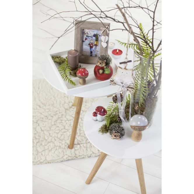 Sie sind auf der Suche nach toller Dekoration, welche die goldene Jahreszeit auf stilvolle Weise willkommen heißt und Ihr Zuhause darüber hinaus in eine herbstliche Wohlfühloase verwandelt? Dann werden Sie dieses Stück lieben! Der hinreißende Fliegenpilz eignen sich hervorragend, um Ihre heimischen vier Wände in eine behagliche Herbstatmosphäre zu tauchen. Er besteht aus Holz, misst 9 cm und ist insbesondere dank dem charakteristischen, knallroten Hütchen ein dekoratives Highlight. Durch sein natürliches Material fügt sich der Pilz nahtlos in jeden Raum hinein und lässt sich dabei sogar mühelos mit weiteren herbstlichen Elementen kombinieren. Also lassen Sie Ihrer Fantasie freien Lauf und schmücken Sie munter drauflos.