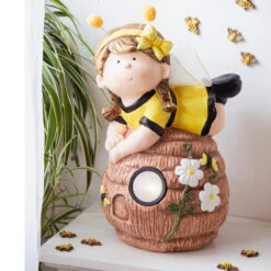 LED-Solarlampe – Mädchen – Aus Magnesia – Ca. 29,5 X 24,5 X 43 Cm