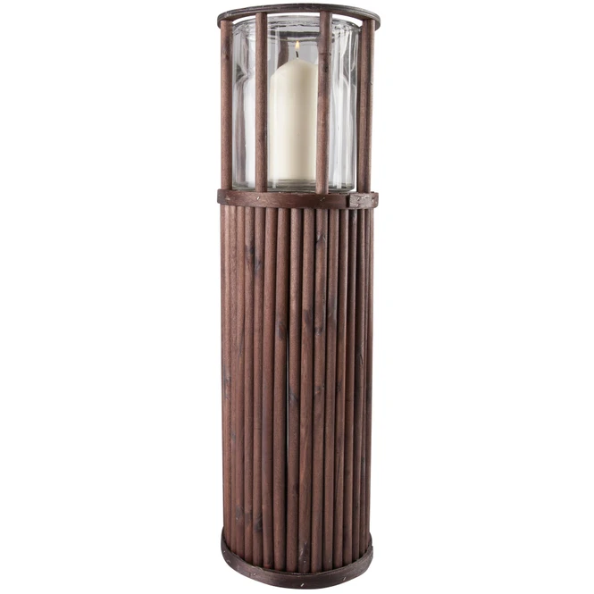 All diejenigen, die es mögen, ihr Zuhause mithilfe stilvoller Dekoration zu verschönern, um sich eine heimische Wohlfühloase zu schaffen, kommen mit dem hinreißenden Kerzenständer vollends auf ihre Kosten! Dieser besteht aus naturbelassenem Holz, verfügt über eine Höhe von 58 cm und kommt in einem warmen Braunton und trendiger Rattanoptik daher, durch den er sich nicht nur nahtlos in jeden Raum integriert, sondern welcher ihn auch zu einem rustikalen Hingucker macht. Darüber hinaus ist der Windlichtständer mit einem Glaseinsatz ausgestattet, in dessen Inneren ihr eine Kerze (nicht im Lieferumfang enthalten) zünden und euch am wohligen Flackern ebendieser erfreuen könnt. Ganz gleich, ob im Hausflur, Wohn- oder Esszimmer – das geschmackvolle Windlicht lässt wirklich keine Dekowünsche offen.