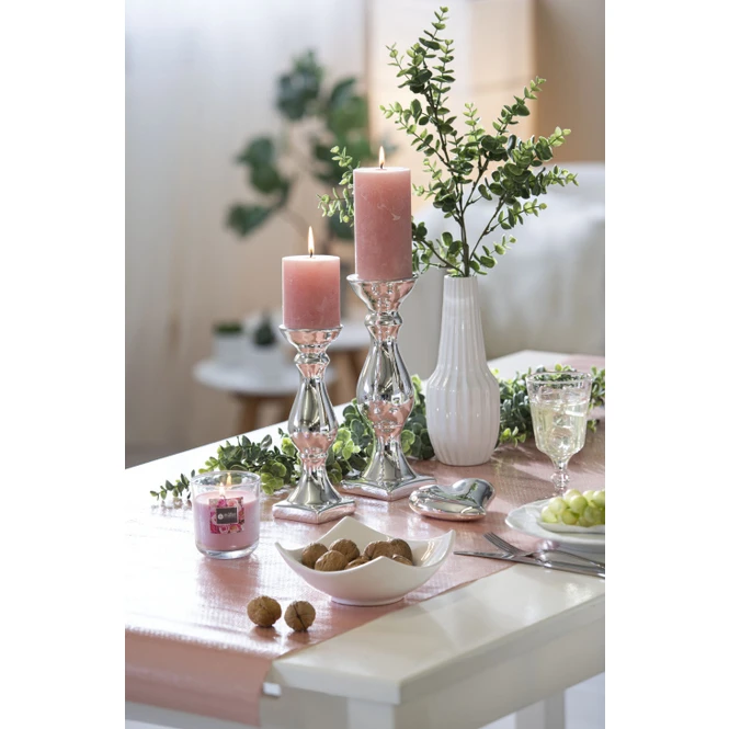Sie mögen es, in Ihrem Zuhause mittels stilvoller Dekoration individuelle Akzente zu setzen und legen dabei großen Wert auf unkomplizierte Stücke, welche sich vollkommen nach Ihrem Belieben in Szene setzen lassen? Dann werden Sie den hinreißenden Kerzenständer lieben! Dieser ist nämlich dank der liebevollen Gestaltung ein echter Augenschmaus und somit genau das Richtige, um die Fantasie beim Schmücken frei walten zu lassen. Er besteht aus glänzendem Keramik, ist ca. 9 x 9 x 26,5 cm groß und insbesondere aufgrund des edlen Silbers ein dekoratives Highlight, von dem Sie und Ihre Lieben ganz sicher nicht genug bekommen. Ganz gleich, ob im Hausflur, Wohn- oder Esszimmer – mit dem niedlichen Kerzenhalter bleiben fortan keinerlei Dekowünsche mehr offen. Also schnappen Sie ihn sich und legen Sie gleich los!