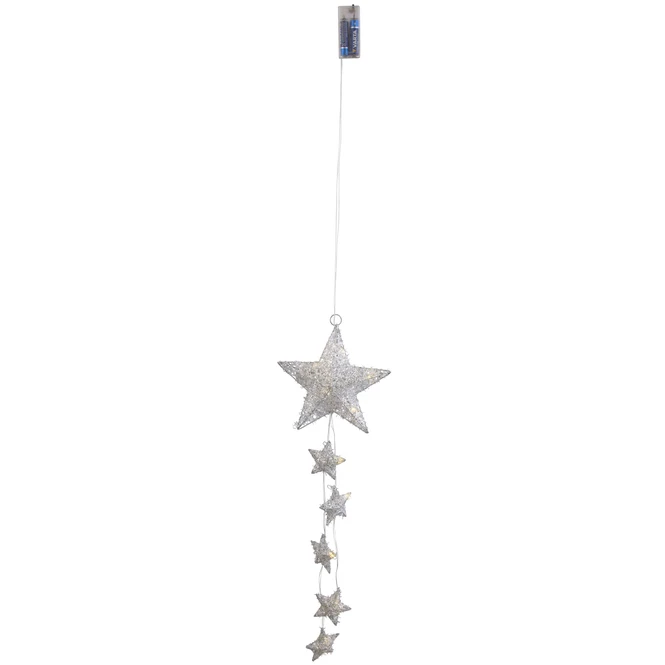 Sie sind das beliebteste Thema in der Vorweihnachtszeit und dürfen daher auch in Ihrem Zuhause keineswegs fehlen: Sterne. Wenn Sie auf der Suche nach einem besonderen Stück sind, mit dem Sie sich beim adventlichen Schmücken munter austoben und grenzenlosen Dekospaß erleben können, haben wir hier genau das Richtige! Der winterliche LED-Dekohänger verzaubert echte Trendsetter im Handumdrehen. Dieser ist nicht nur eine gelungene Neuinterpretation des Adventsklassikers, sondern er eignet sich darüber hinaus auch ideal, um mühelos weihnachtliche Akzente in den vier Wänden zu setzen. Er besteht aus Kunststoff, ist 70 cm lang und insbesondere dank den LEDs, die in Kombination mit 2x AA Batterien (nicht im Lieferumfang enthalten) warmweiß leuchten, ein echter Augenschmaus. Aufgehängt am Fenster, an der Tür oder der Wand kommt der niedliche Stern optimal zur Geltung und taucht jeden Raum in eine behagliche Winteratmosphäre. Also schnappen Sie ihn sich und lassen Sie die Fantasie frei walten!