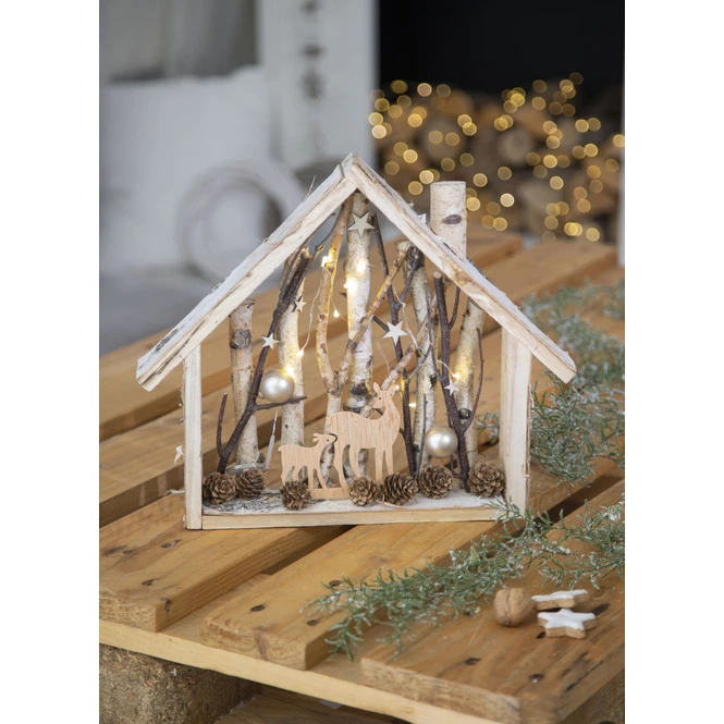 LED-Haus – aus Holz – 35,5 x 6 x 32 cm