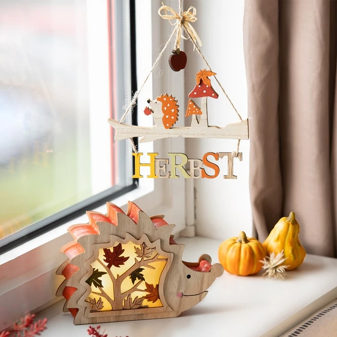 LED-Igel – aus Holz – ca. 19,5 x 4,5 x 13,5 cm