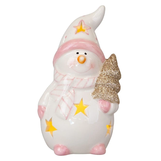LED-Schneemann – aus Dolomit – ca. 7,5 x 6 x 13 cm
