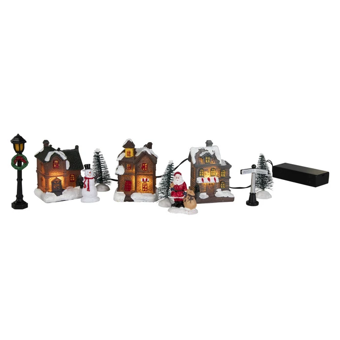 - Lieferumfang: 1 Set, bestehend aus 3 Häusern, 3 Bäumen, 1 Nikolaus, 1 Schneemann, 1 Laterne sowie 1 Straßenschild