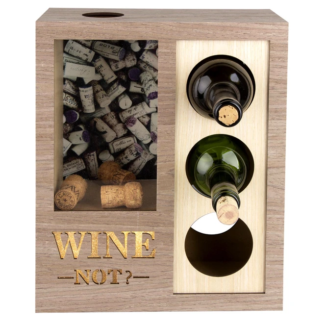 All diejenigen, die einen Sinn ausgeprägten für Ästhetik haben und darüber hinaus Wein mögen, werden den supercoolen LED-Weinflaschenhalter lieben! Dieser ist nämlich genau das Richtige, um dem Zuhause in Sekundenschnelle eine persönliche Note zu geben und moderne Akzente zu setzen. Er besteht aus Holz, verfügt über die Maße 28 x 12,5 x 34 cm und ist insbesondere dank dem augenscheinlichen Schriftzug der absolute Hingucker. Letzterer wird zusätzlich durch eine Leuchtfunktion unterstützt: In Kombination mit 3x AA Batterien (nicht im Lieferumfang enthalten) kommt die Silhouette der Buchstaben hervorragend zur Geltung, während die Kiste neben dem Platz für drei Weinflaschen zudem Stauraum für Korken bereithält. Aus diesem Grund ist die Weinbox genau das Richtige für echte Weinliebhaber, die nicht genug von außergewöhnlicher Dekoration bekommen.