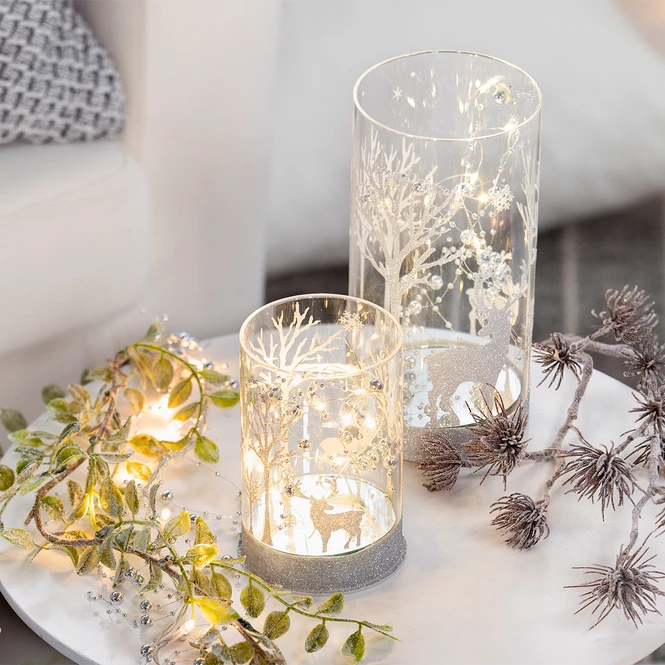 LED-Zylinder – Hirsche – aus Glas – ca. 10 x 10 x 20 cm