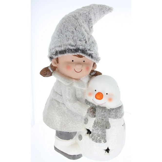 Mädchen und Schneemann mit LED – ca. 28 x 19 x 57 cm