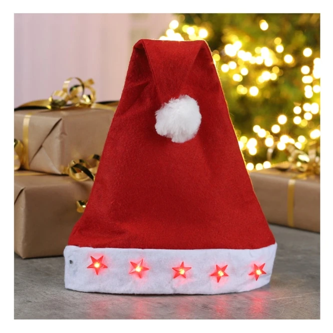 Nikolausmütze – mit Blinkfunktion – für Erwachsene – ca. 30 x 45 cm