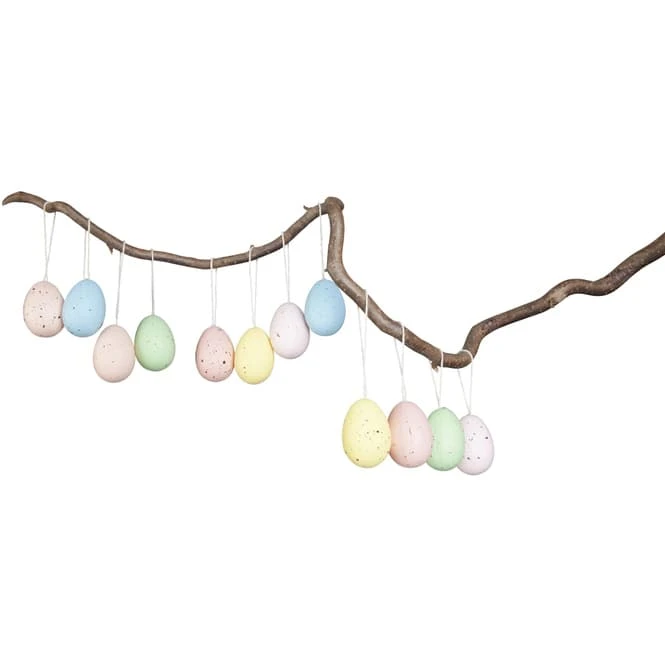 Sie stehen für Fruchtbarkeit und Neubeginn und sind das Ostersymbol schlechthin – die Rede ist von Eiern. Diese schmecken nicht nur lecker, sondern dürfen auch in der österlichen Dekoration keineswegs fehlen. Wenn ihr auf der Suche nach einer gelungenen Neuinterpretation seid, mit der ihr eurer Fantasie in der Vorosterzeit freien Lauf lassen könnt, haben wir hier genau das Richtige! Die kunterbunten Ostereier eignen sich nämlich ideal, um sich beim frühjährlichen Schmücken munter auszutoben und binnen Sekunden persönliche Akzente in der Inneneinrichtung zu setzen. Sie bestehen aus Kunststoff, sind ca. 5 cm lang und können mithilfe der Schnur kinderleicht an der gewünschten Stelle angebracht werden. Ganz gleich, ob an einem natürlichen Strauch, in einer dekorativen Vase oder über der Festtafel verstreut – mit den tollen Deko-Eiern bleiben fortan keinerlei Wünsche mehr offen.
