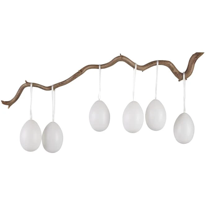 Sie stehen nicht nur für Fruchtbarkeit und neues Leben, sondern sind auch das Ostersymbol schlechthin: Eier. Infolgedessen dürfen sie zu dieser Jahreszeit in keinem geschmückten Zuhause fehlen. Wenn Sie auf der Suche nach neuen Ostereiern sind, mit denen Sie den letzten Winterfrust binnen Sekunden vertreiben und den Lenz auf dekorative Weise begrüßen können, liegen Sie mit diesen goldrichtig! Sie bestehen aus robustem Kunststoff, sind jeweils ca. 6 x 4 cm groß und in kommen in klassischem Weiß zu Ihnen nach Hause. Platziert an der richtigen Stelle oder dekorativ an einem Zweig (separat erhältlich) befestigt, sind die Eier das ideale Zubehör, um eine heitere Osterstimmung aufkommen zu lassen, von der Sie und Ihre Lieben niemals genug bekommen.