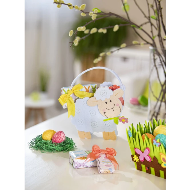 Bunte Eier und leckere Süßigkeiten sind in der österlichen Zeit einfach unerlässlich und dürfen weder bei Jung noch Alt fehlen. Denn prall gefüllter Nester bringen uns in Sekundenschnelle zum Strahlen, weshalb auch Erwachsene großen Spaß daran haben, welche zu suchen, um sich anschließen über den köstlichen Inhalt herzumachen. Damit die Leckereien fortan besonders gut zur Geltung kommen, ist das niedliche Osterkörbchen das optimale Zubehör. Es besteht aus liebevoll gestaltetem Filz, misst 20 x 16 x 12,5 cm und ist vor allem dank der liebevollen Gestaltung ein fröhlicher Osterbote. Somit eignet es sich nicht nur hervorragend, um die Ostereier sicher aufzubewahren, sondern überdies auch, um die heimischen vier Wände im Nu in ein heiteres Frühlingsambiente zu tauchen. Also lassen Sie Ihrer Fantasie freien Lauf und schmücken Sie munter drauflos!