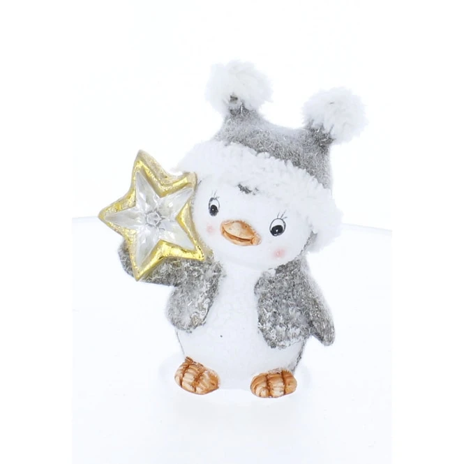 Pinguin stehend mit LED Stern – ca. 13 x 8,5 x 16 cm