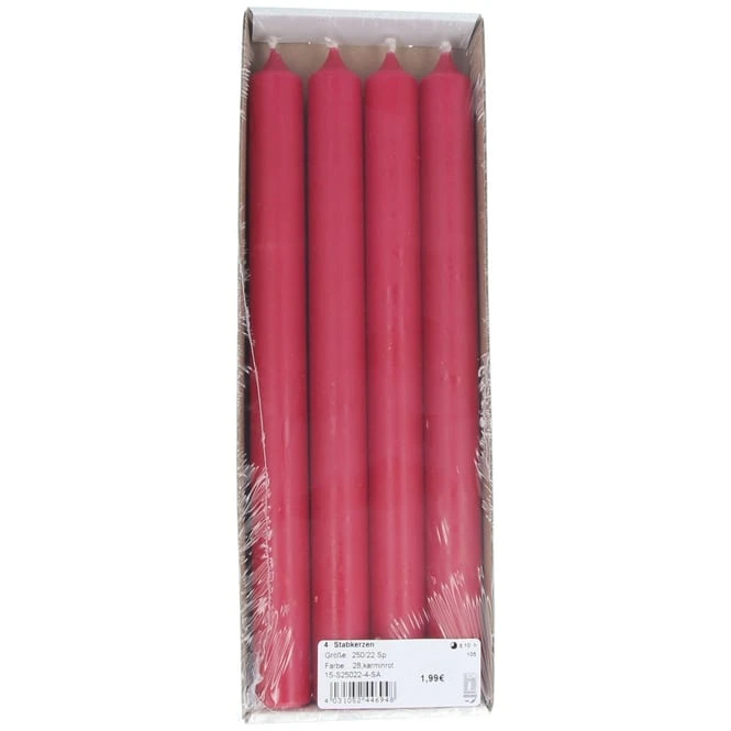 Stabkerzen – ca. 2 x 25 cm – 4 Stück – kaminrot