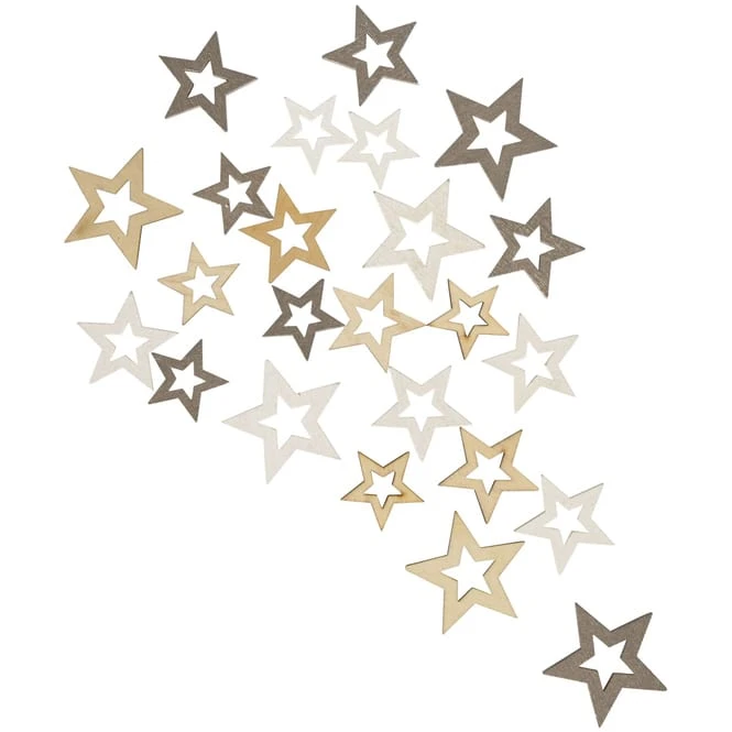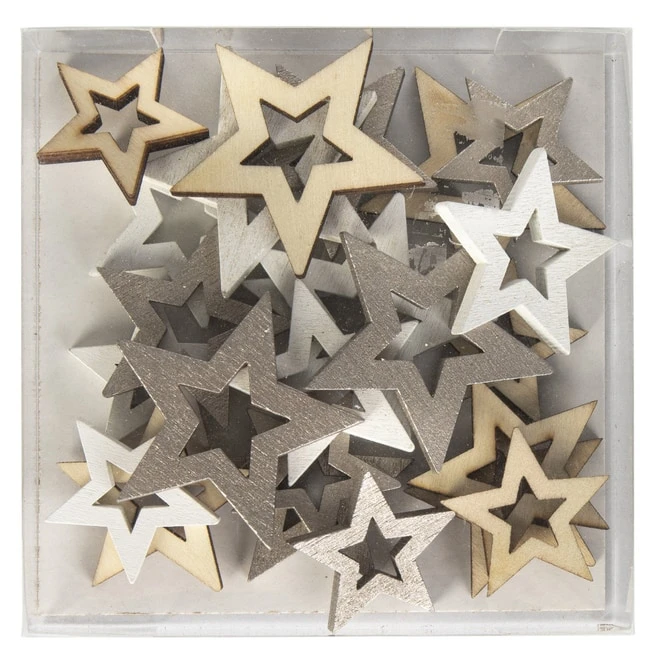 All diejenigen, die ihr Zuhause in der Adventszeit gerne schmücken und dabei Stücke bevorzugen, die nicht nur stimmungsvoll aussehen, sondern sich darüber hinaus auch vollkommen nach Belieben in Szene setzen lassen, werden die vielseitige Streudeko lieben! Diese kommt in Form von 24 liebevoll gestaltete Sternen daher, die insbesondere aufgrund der modernen Farbkombination echte Hingucker sind. Sie bestehen aus Holz und eignen sich hervorragend, um der Kreativität beim Dekorieren freien Lauf zu lassen. Aus diesem Grund sind die niedlichen Dekosterne genau das Richtige, um die vier Wände in Sekundenschnelle in eine behagliche Winteratmosphäre zu tauchen. Also ran an die tolle Sterne und munter drauflos schmücken!