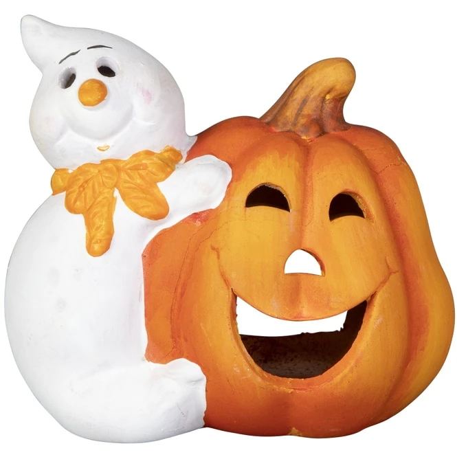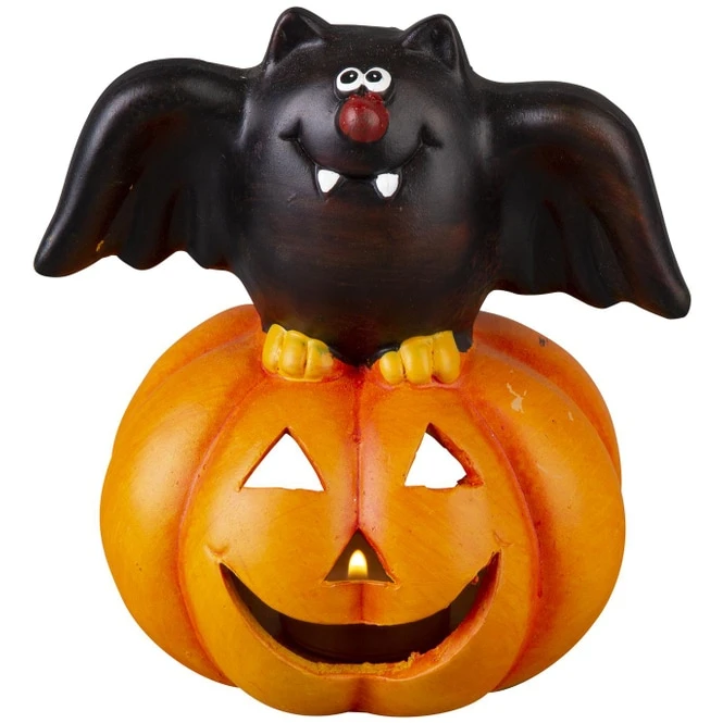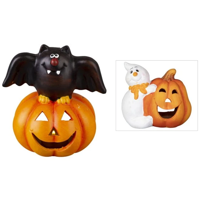 Kürbisse sind ein ebenso fester Bestandteil von Halloween wie Hexen, Spinnen oder „Süßes-oder-Saures“. Wenn Sie auf der Suche nach einem augenscheinlichen Stück für Ihre Gruselfeier sind und keine Lust auf langweilige Standards haben, werden Sie das supercoole Windlicht lieben! Dieses besteht aus Keramik, misst ca. 15 x 11,5 x 16 cm und kommt als niedlicher Kürbis gestaltet mit einer niedlichen Fledermaus oder einem freundlichen Geist zu Ihnen (eine Vorauswahl ist leider nicht möglich). In Kombination mit einem herrlich flackernden Teelicht (nicht im Lieferumfang enthalten) sorgt es nicht nur für eine schaurig-schöne Gänsehautatmosphäre, sondern eignet sich auch hervorragend dazu, um die Nacht der Nächte stilecht einzuläuten. Aus diesem Grund ist der tolle Kürbis genau das Richtige, um die heimischen vier Wände in Sekundenschnelle in ein wohliges Halloweenambiente zu tauchen, weswegen es bei keinem Trendsetter fehlen darf.