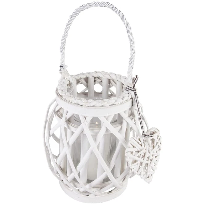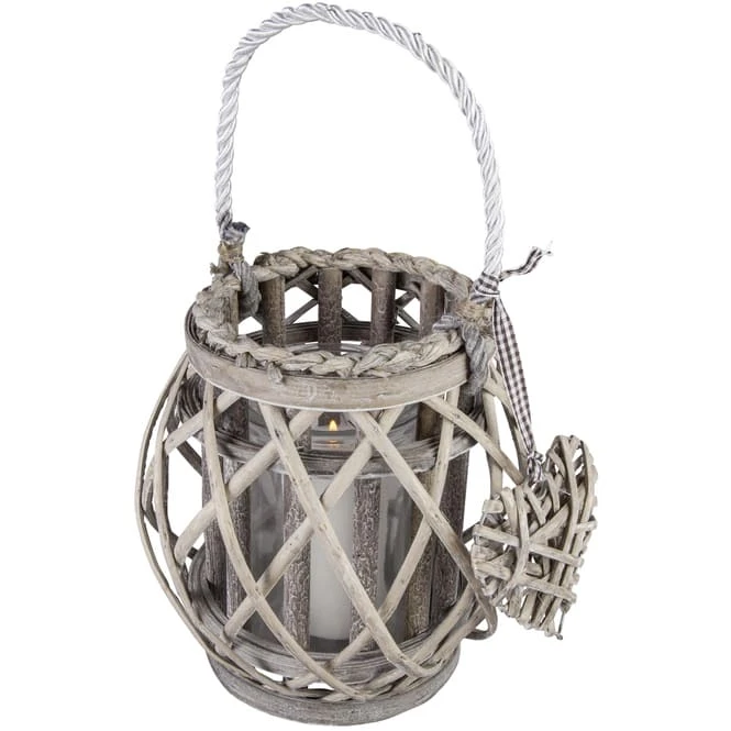 All diejenigen, die außergewöhnliche Dekoration mögen, werden das hinreißende Windlicht lieben! Dieses ist mit Spaltweide ummantelt ist und vor allem dank der extravaganten Gestaltung, dem baumelnden Herzchen sowie dem aus Kordel bestehenden Henkel ein echter Augenschmaus, von dem nicht nur echte Trendsetter ganz sicher nicht genug bekommen. Es ist verfügt über einen Durchmesser von 20 cm, ist 21 cm hoch und in zwei trendigen Farben erhältlich. Durch die harmonische Kombination aus natürlichen Materialien und neutralen Tönen fügt sich die Laterne nahtlos in jeden Raum ein und taucht ihn in Verbindung mit einer Kerze (nicht im Lieferumfang enthalten) in ein paradiesisches Wohlfühlambiente, welches nach einem arbeitsreichen Tag zum Entspannen und Träumen einlädt. Also lassen Sie Ihrer Fantasie freien Lauf und schmücken Sie munter drauflos!