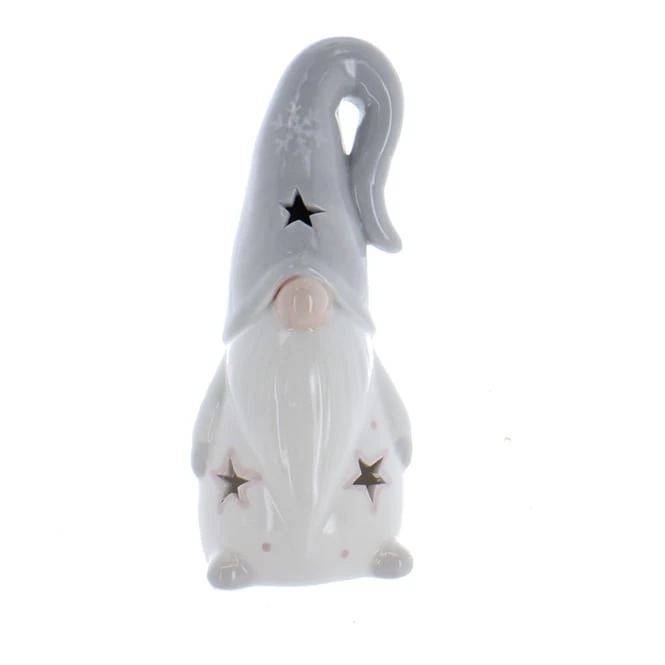 Windlicht Wichtel grau/weiß – ca. 8 x 7,5 x 18,5 cm